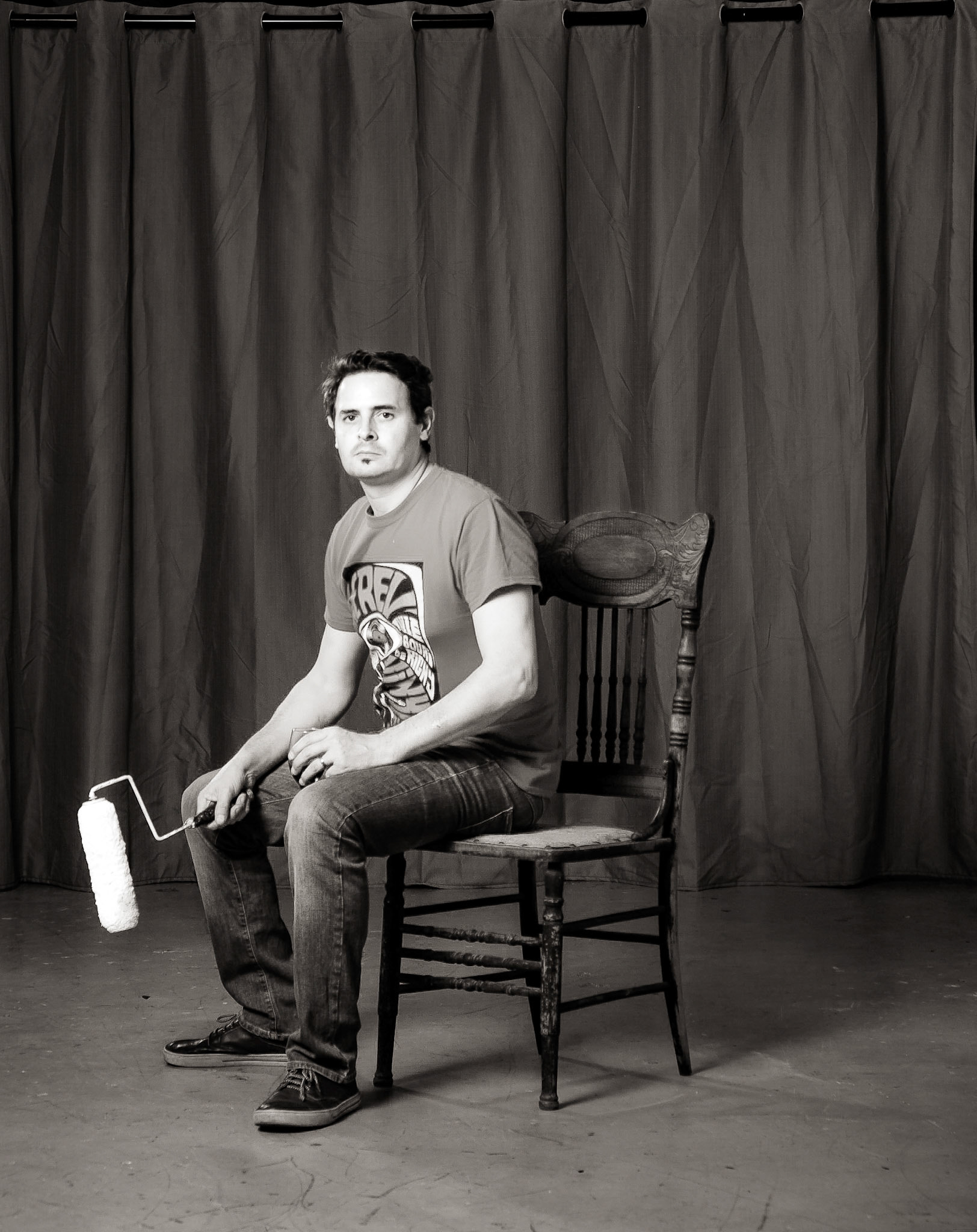 Collection of automated portraits of visitors to the Crow Street Creative, Gladstone, taken on 5th September 2017. Participants were invited to step inside a room containing only one chair and one camera set to capture images at regular intervals.